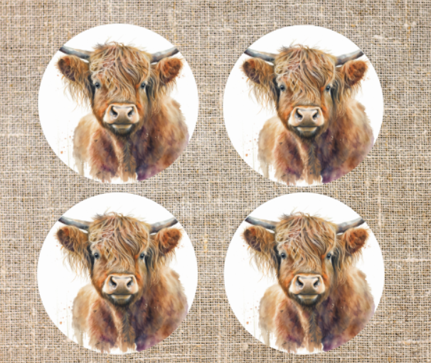 Set van 4 onderzetters met afbeelding van een Schotse Hooglander